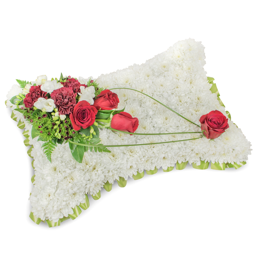 Express heartfelt condolences with our beautifully designed floral arrangement that radiates elegance and care. This luxurious bouquet showcases white chrysanthemums, red roses, white freesias, dark red carnations, dianthus, and bear grass, artfully combined to create a serene tribute. Every flower is meticulously hand-selected for its remarkable freshness and vibrant beauty.